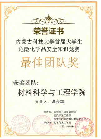 本次竞赛共由三部分组成:初试、必答题、实操题。其中,必答题于2024年12月29日上午在逸夫楼G301举行,实操题于2024年12月29日下午在逸夫楼与明德楼4楼连廊举行。此次竞赛评比出一等奖2名、二等奖4名、三等奖8名,优秀奖25名,最佳团队奖3名。6776永利集团学子在本次比赛中取得了优异成绩,张人匀(金属材料工程)获得二等奖,李凌宇(材料化学)、王哲慧(材料成型及控制工程)获得三等奖,其余5名员工获得优秀奖,同时6776永利集团获得最佳团队奖。